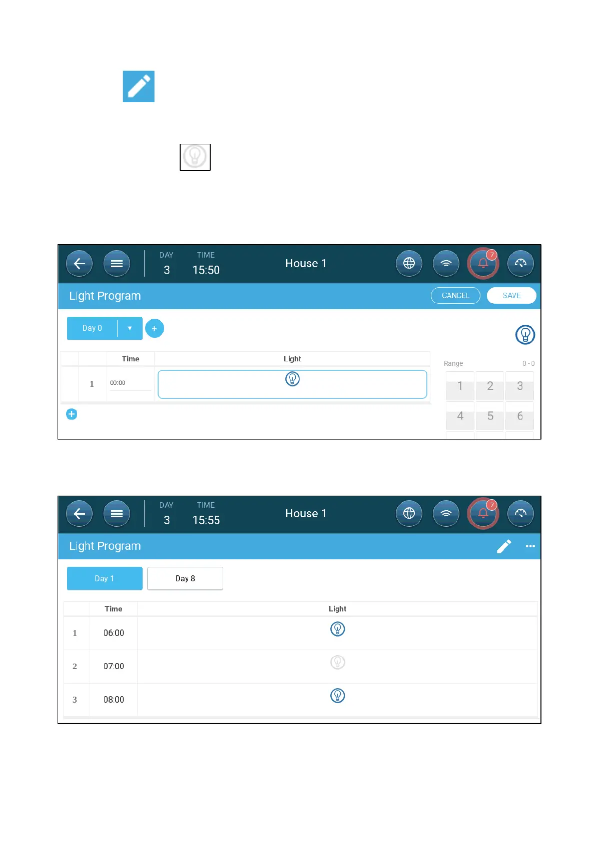 In this scenario, all lights go on at 6:00, turn off at 7:00, and turn on at 8:00.