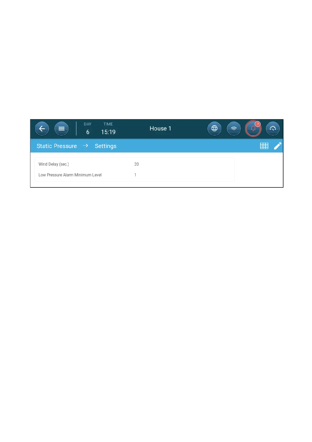 12.2.3.2.3 Static Pressure Settings Screen