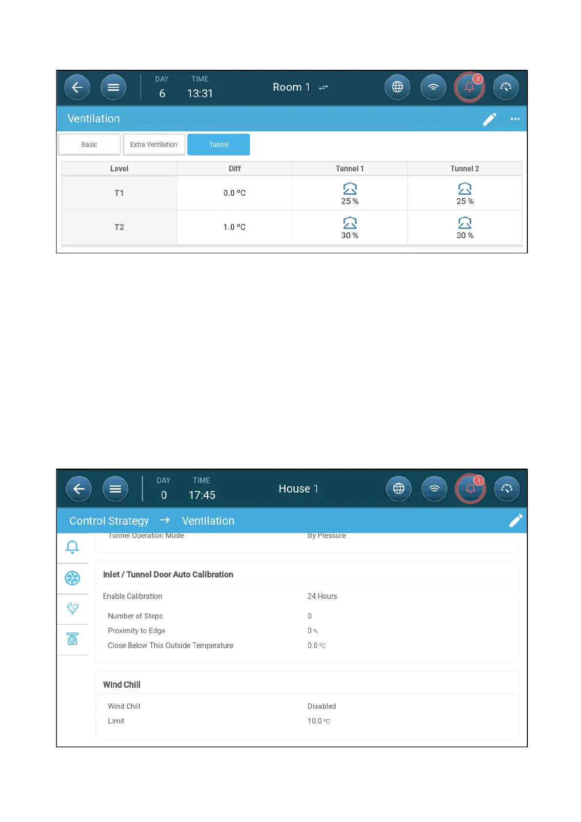 1. Go to System > Control Strategy > Ventilation. Scroll down to Wind Chill.