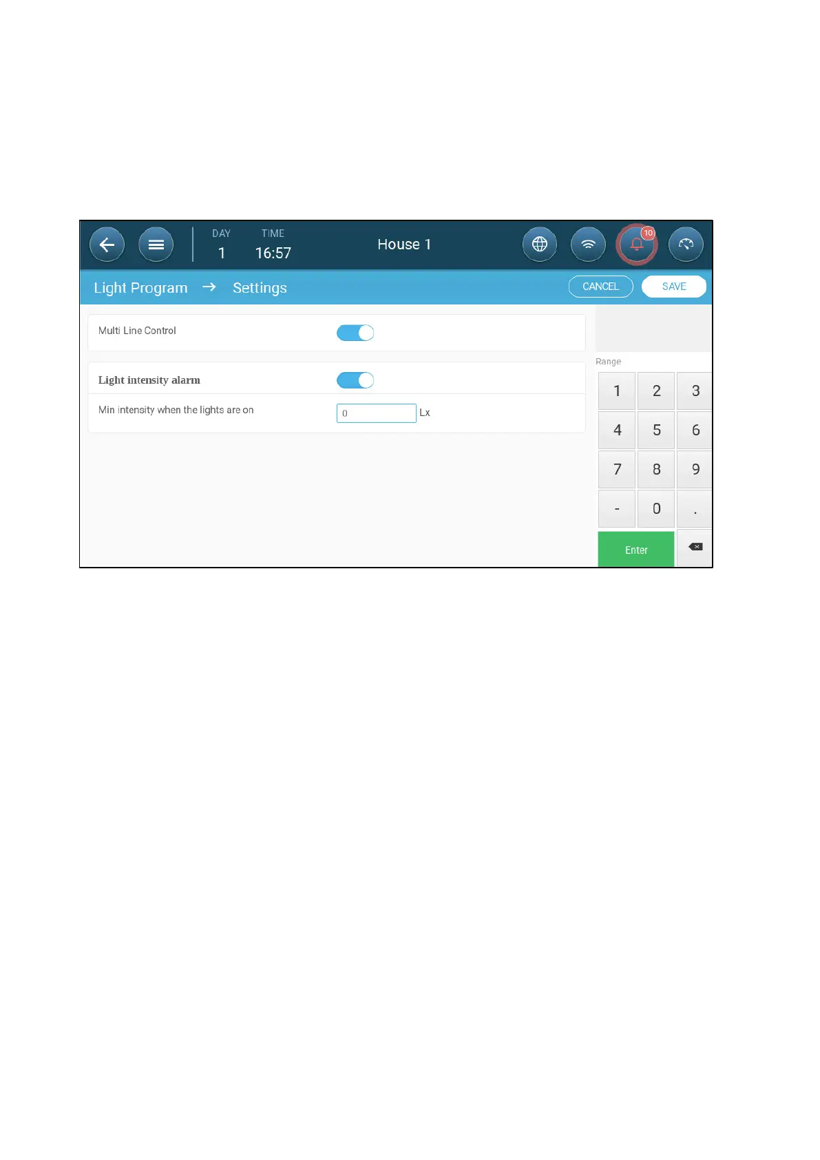 1. Go to Control > Light > Settings and enable Light intensity alarm.