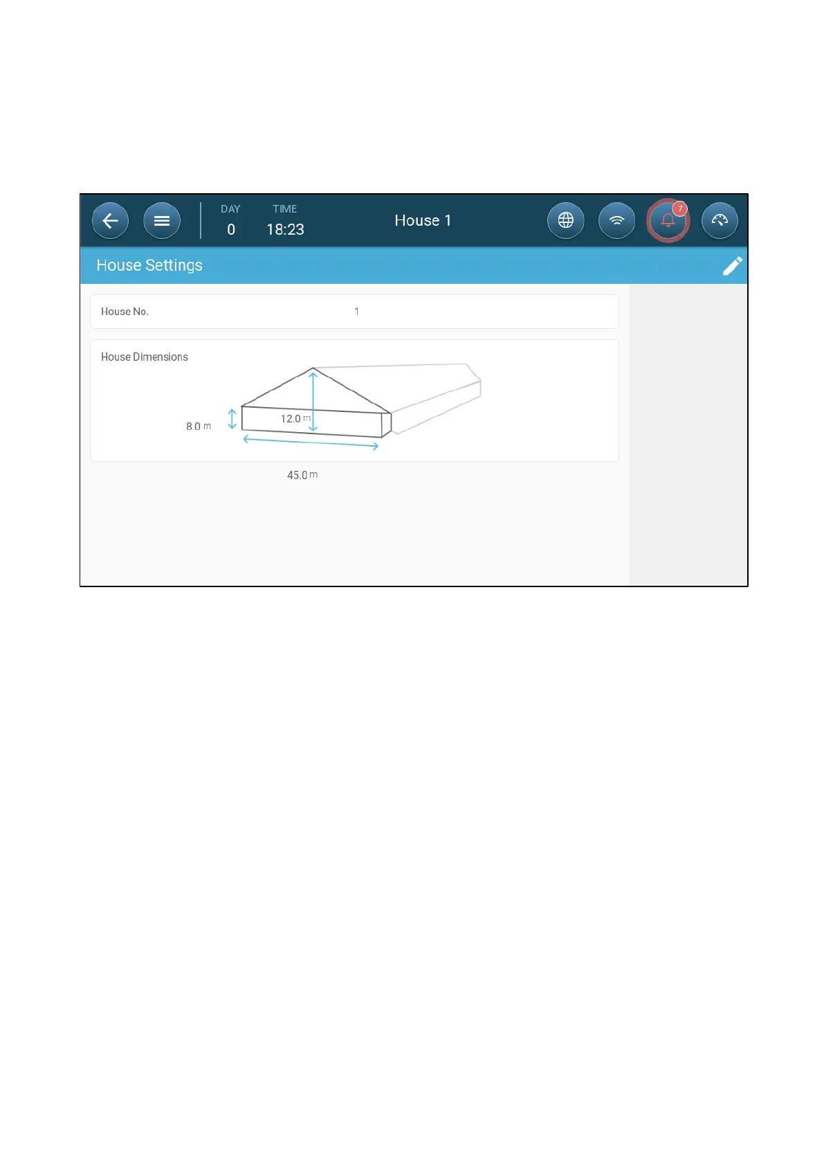 The screen allows the user to set its' house dimensions. Set it according to actual house size. These dimensions