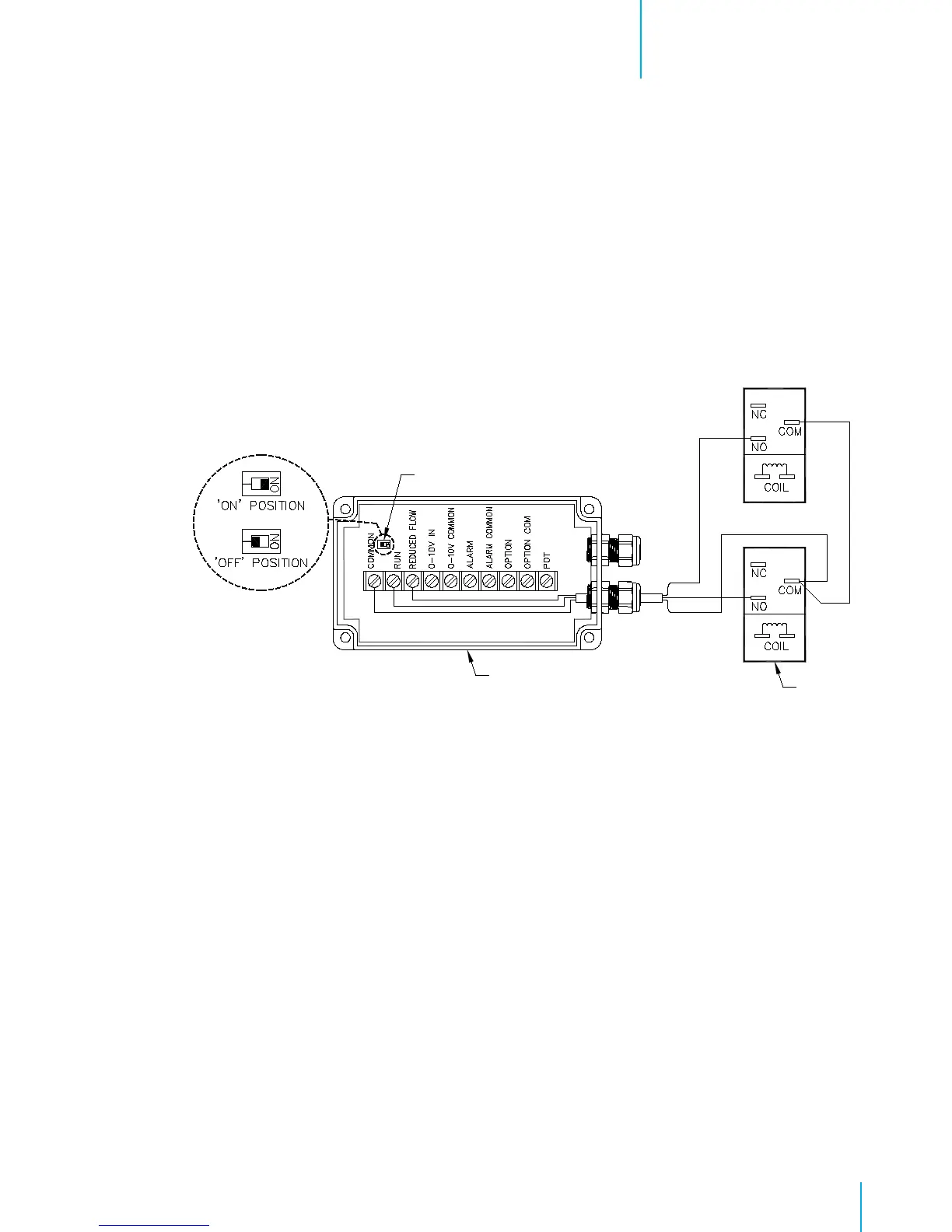 connect the output of the control relay for ‘LOW’ to the ‘REDUCED FLOW’ in the junction box. See Figure 9C.