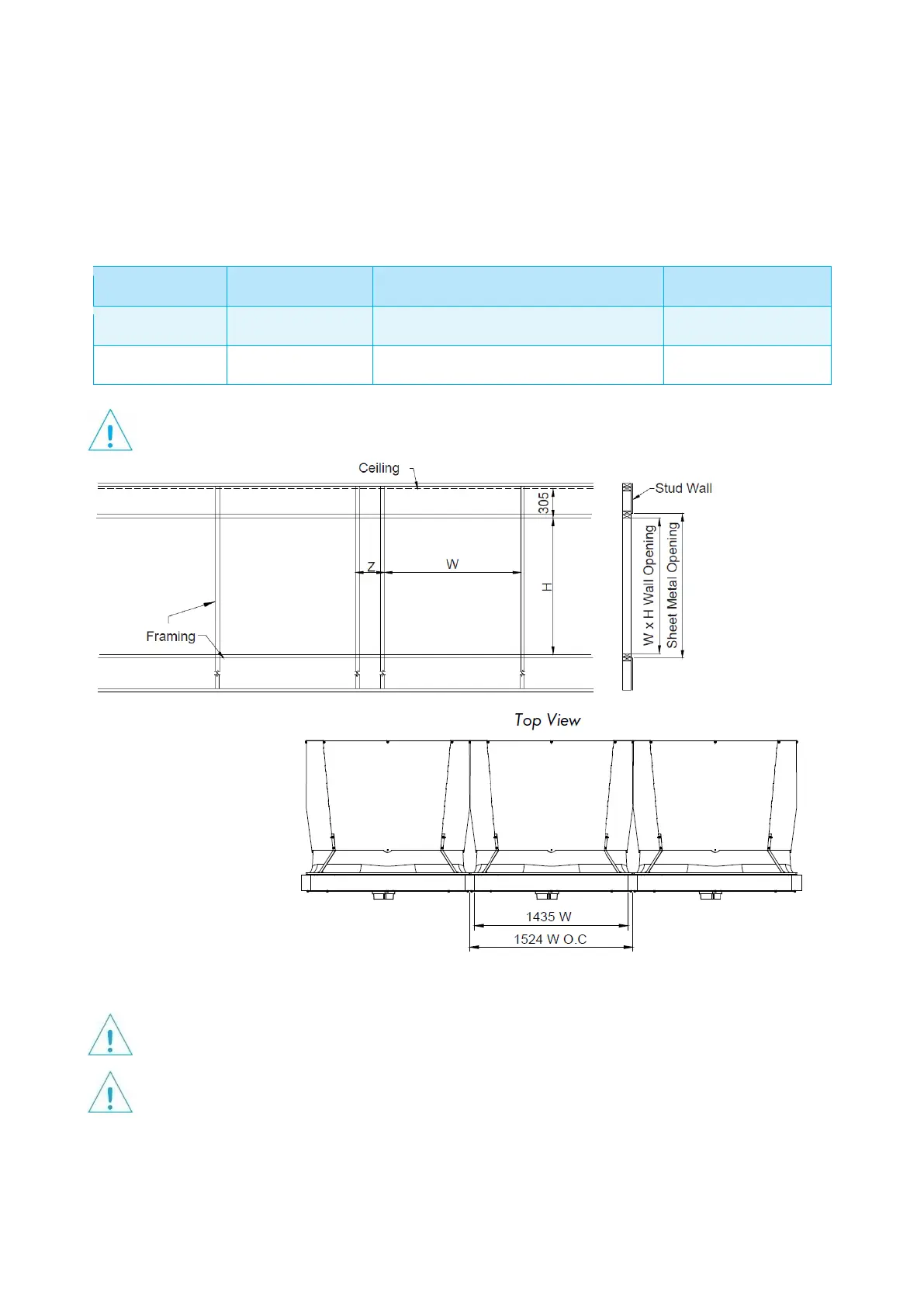 Construct framed opening to correct size according to the Wall Opening listed in chart A below. See Figure 1. When