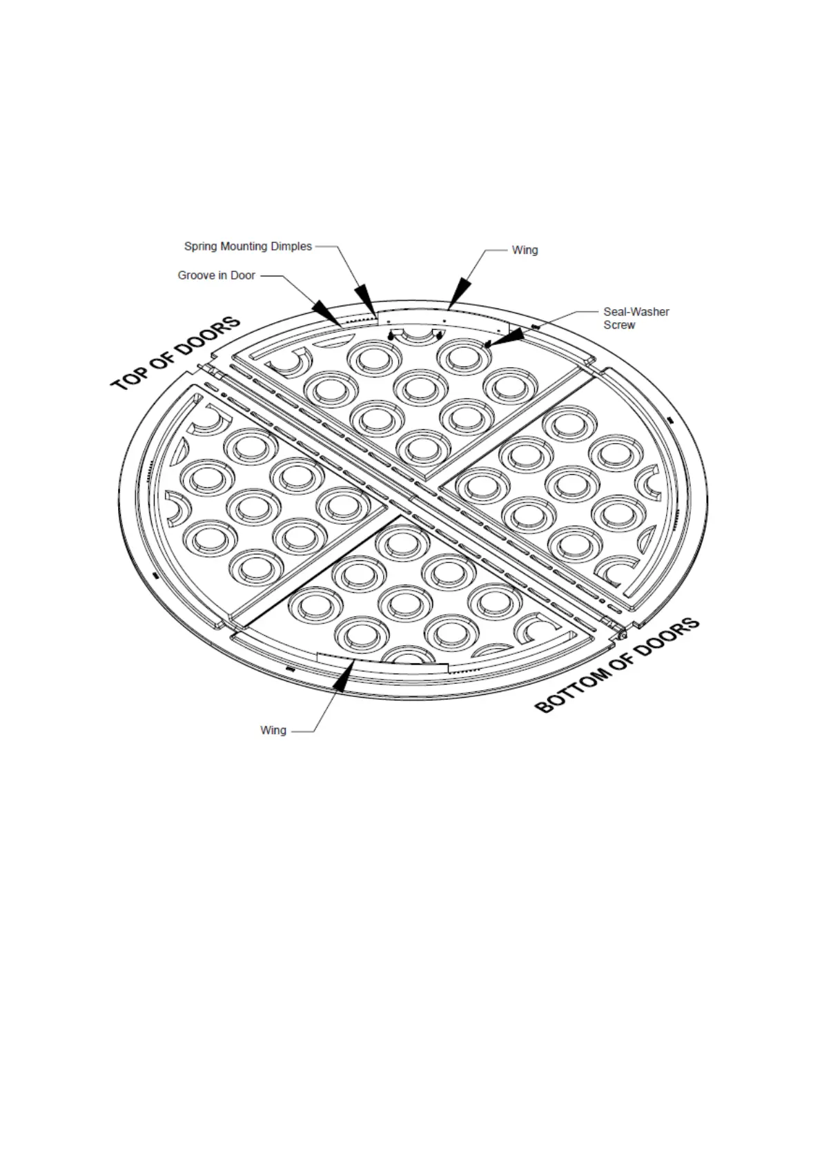 down. The Bottom of the doors has the Hinge Pin with the Nylon Washers. The Wing sits down in the Groove of the upper