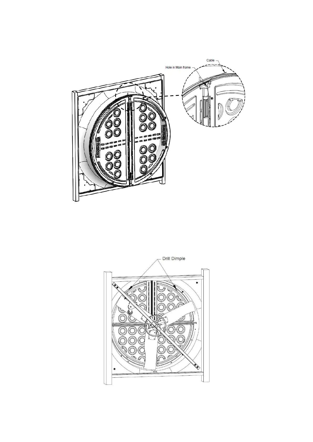 On the room side of each door drill a 3mm dia. Hole in each door through the center of the middle dimple shown. See