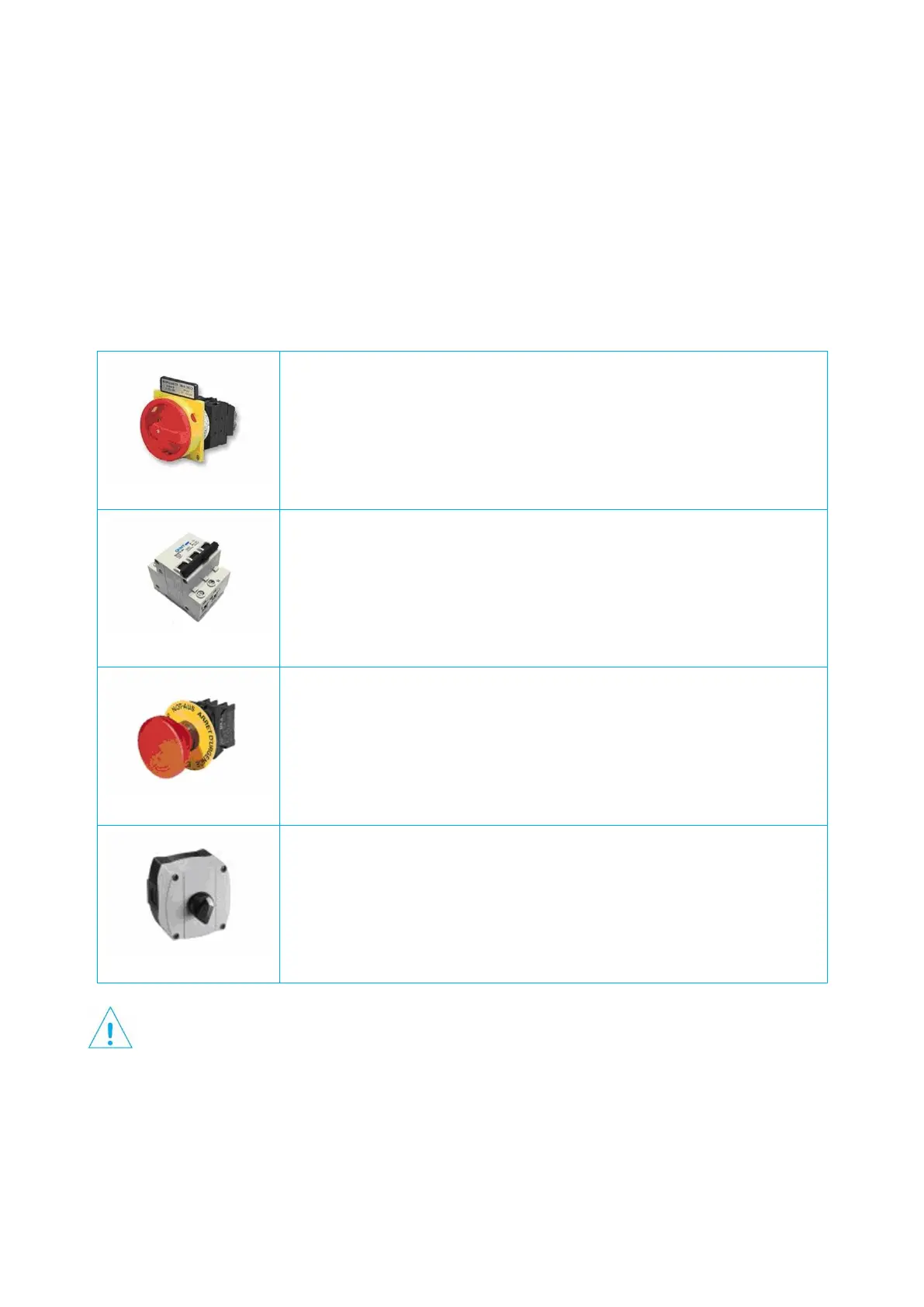 The electrical panel of the fan must generally be equipped with the following devices (bearing EC marking as per directive