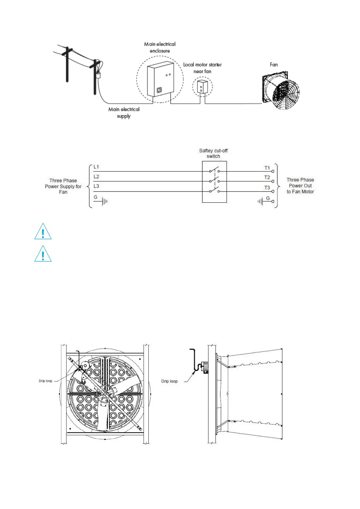 Below are suggested wiring diagrams for connecting the fan to the mains electrical supply. These diagrams are however