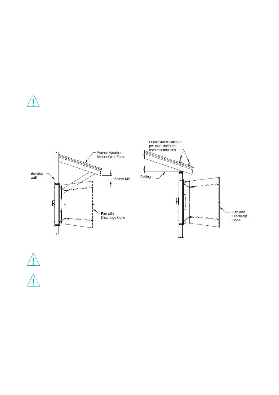 To prevent cone or fan damage from snow or ice sliding off building roof, weather protection must be provided. A weather