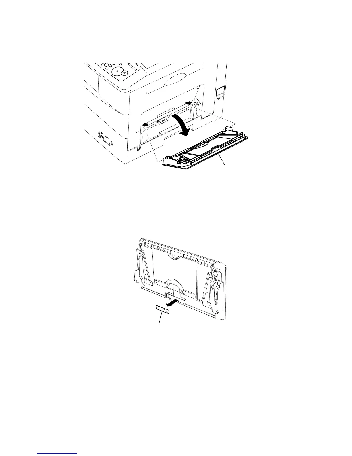 2. Release two locking tabs, and then remove the TRAY A MP.