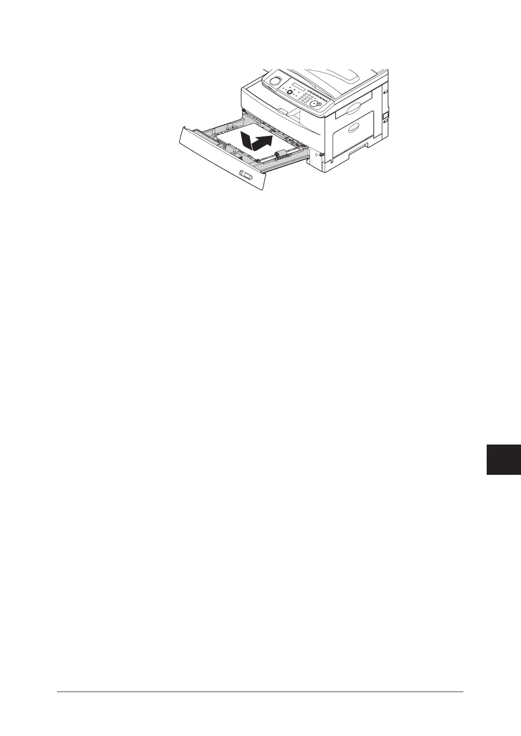 Close the side cover and insert the paper cassette. Lower the rear part of the cassette