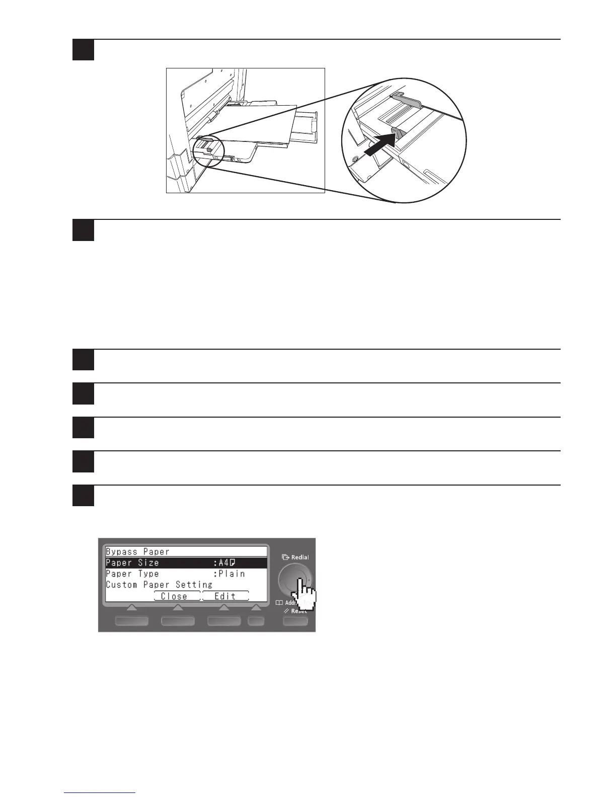Refer to “Setting the paper size in the bypass tray” (below) to specify the size and type of paper.