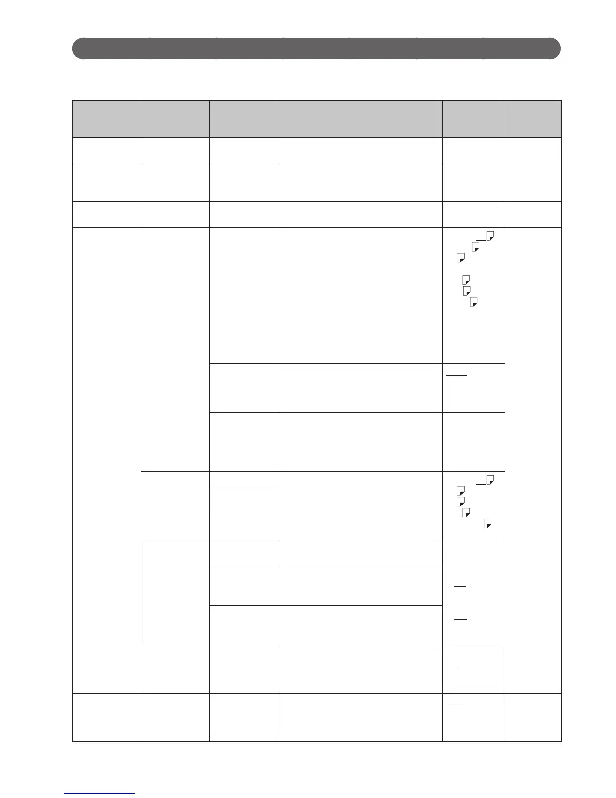 The following is the list of functions available to set in this product. (Underlined values are the default settings