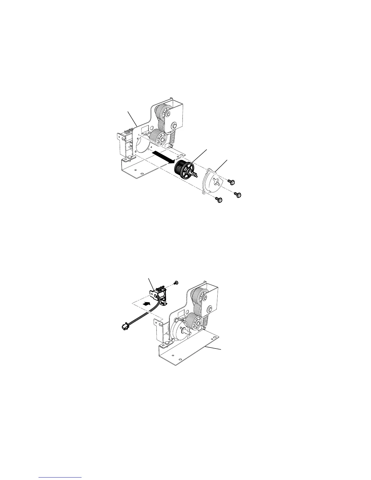 5. Remove three Holder gear 2ND mounting screws, and then remove the Holder gear 2ND.