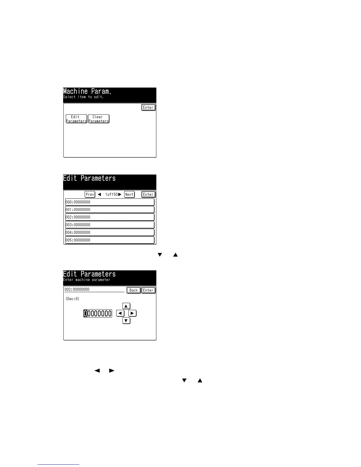 5. To navigate through the machine parameter settings: