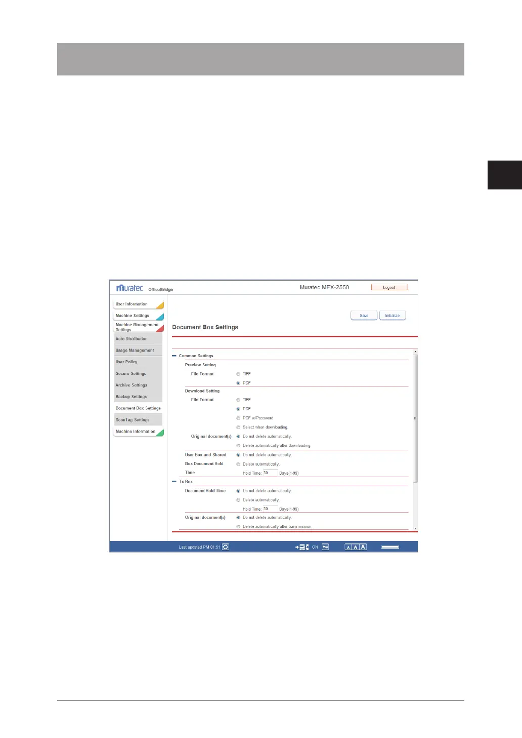 The “Document Box Settings” screen is displayed.