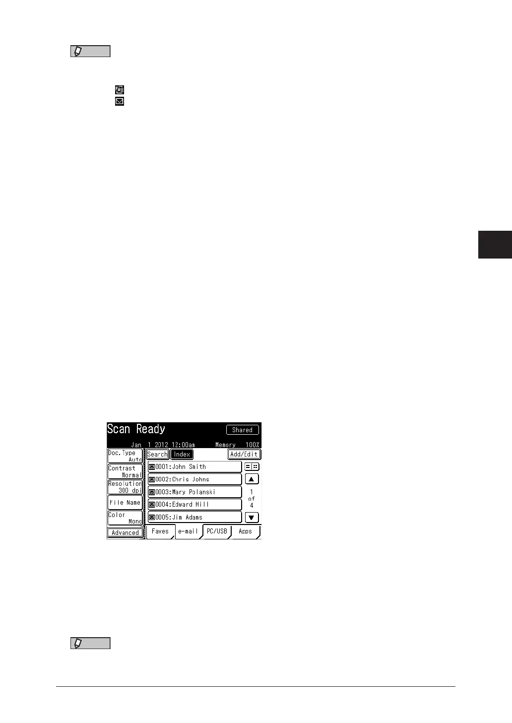 On scan ready screen, press [e-mail] to display the address book.
