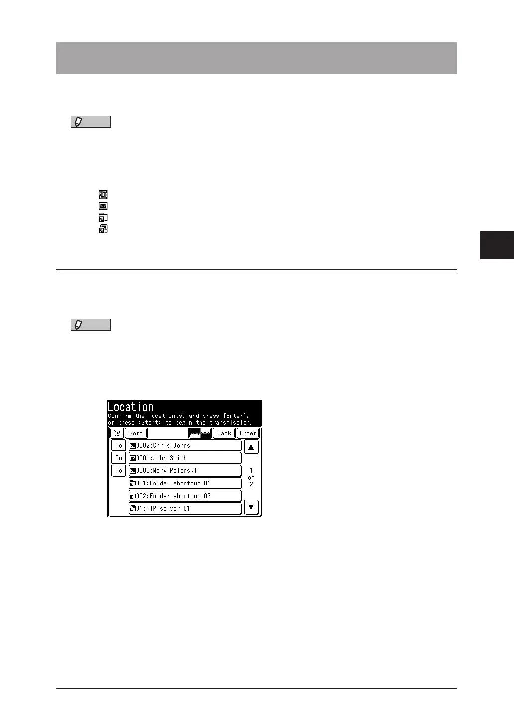 •Press [Sort] to sort the destinations in order of “To”, “Cc”, or “Bcc”.