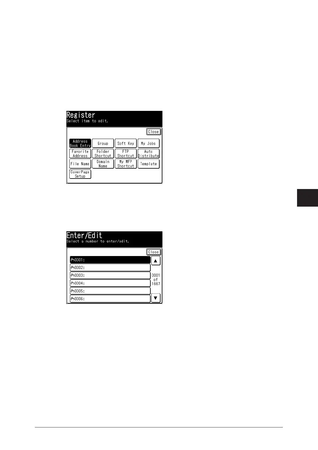 This section describes the procedure for registering address book destinations. When