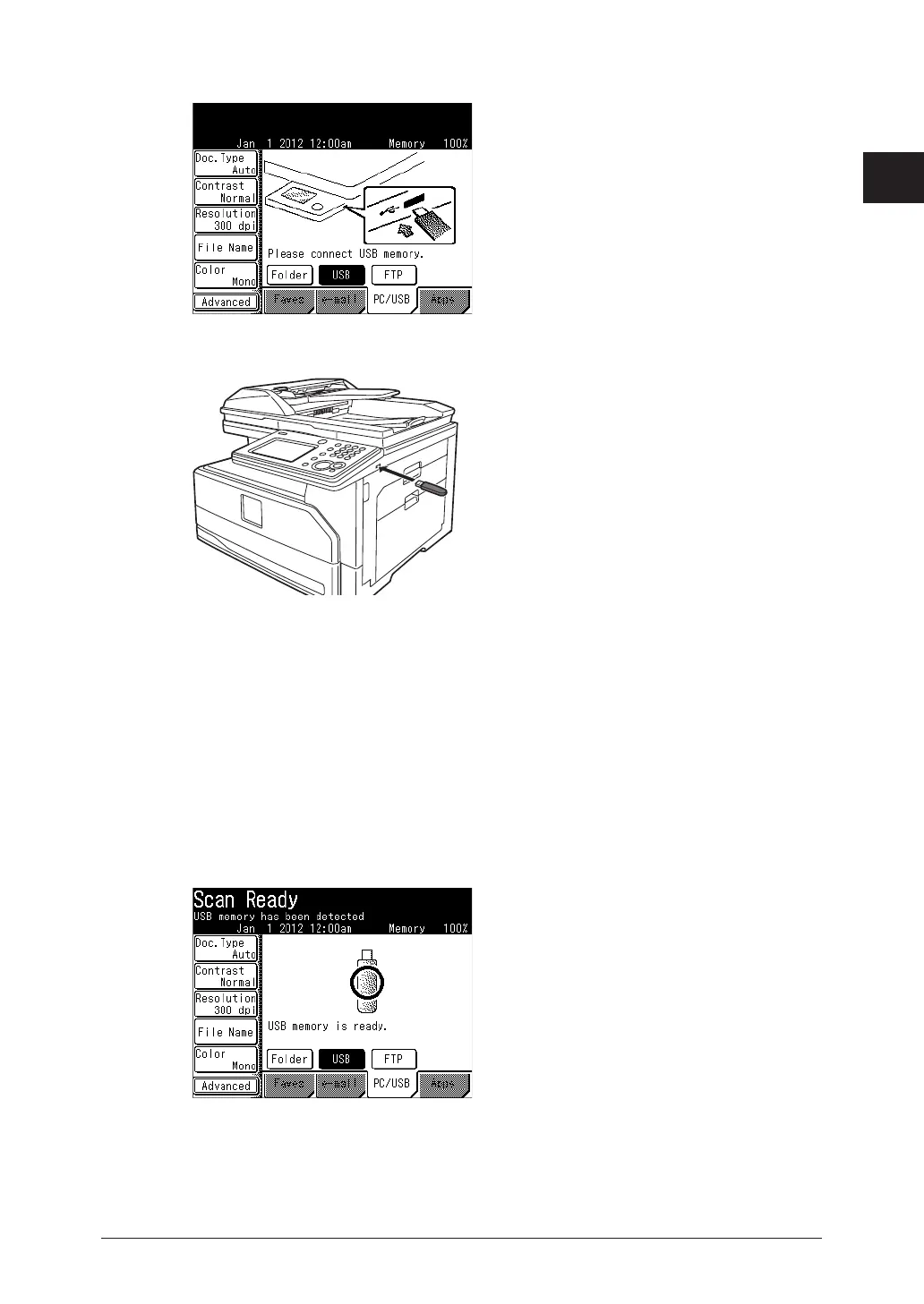 When the message “Scan Ready” is displayed, disconnect the USB memory.