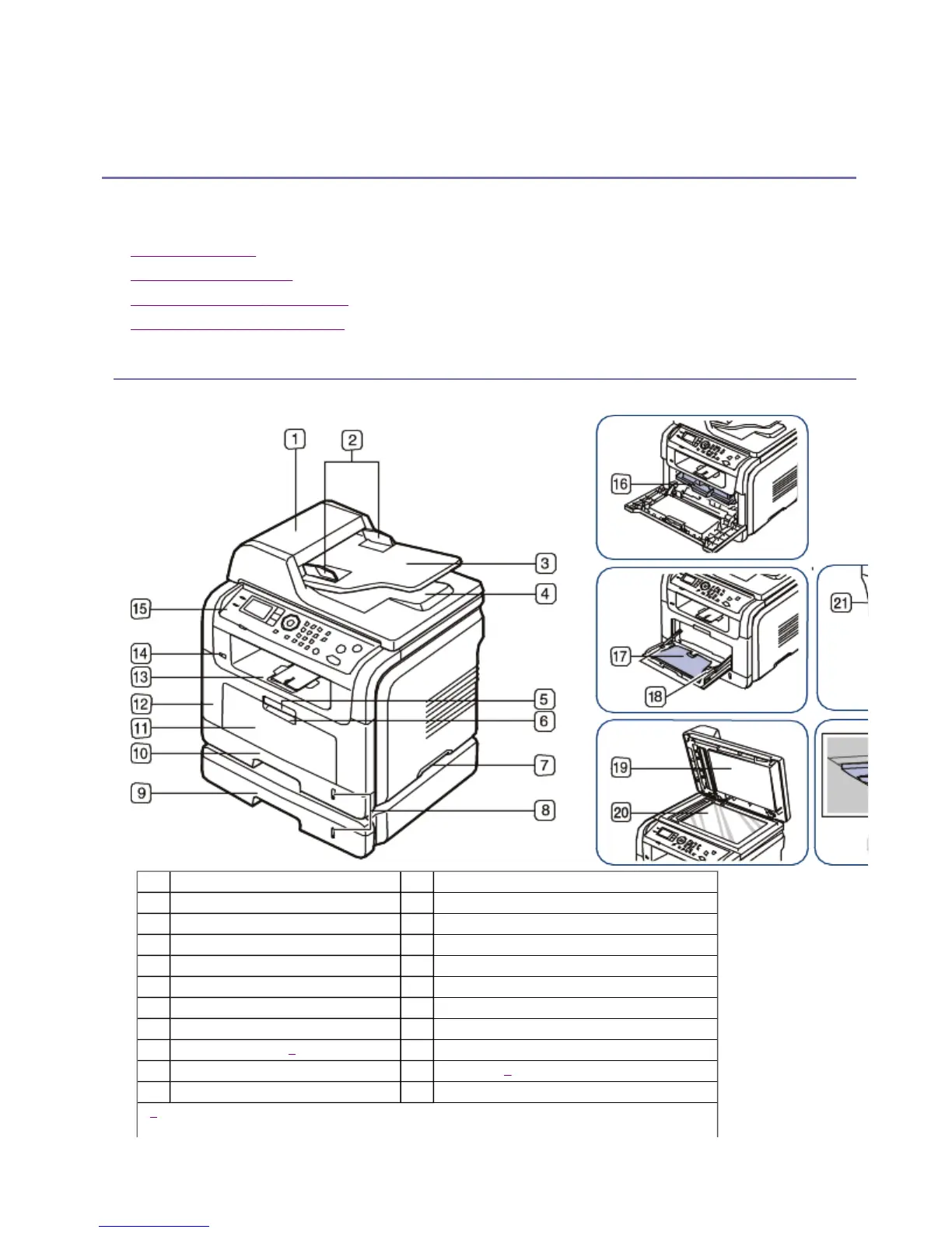 4 Document feeder output tray 15 Control panel