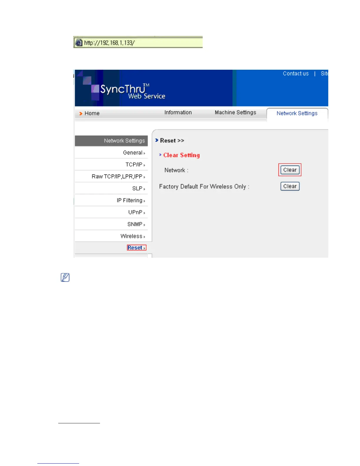 3. Click Reset. Then, click Clear for network.
