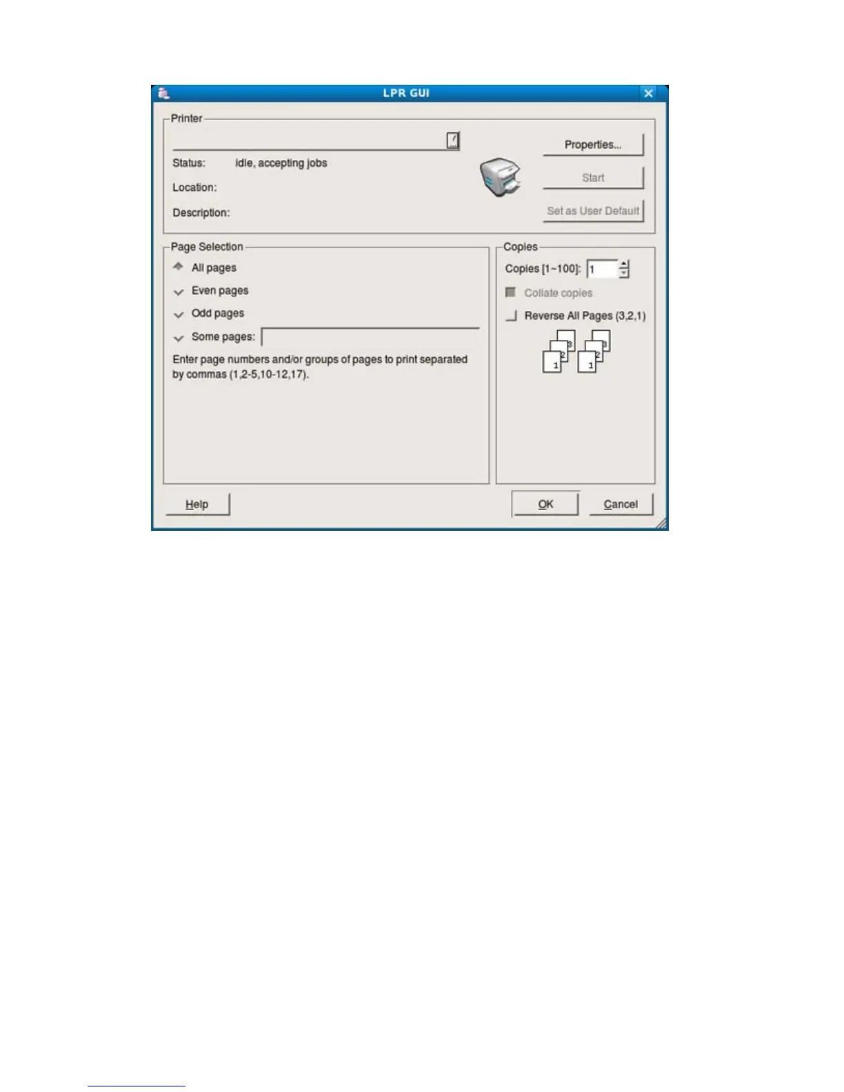 4. Change the print job properties using the following four tabs displayed at the top of the window.