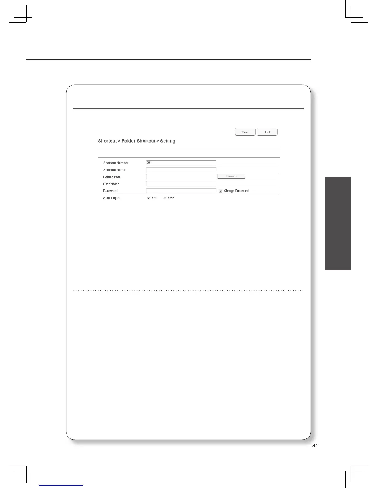 • Folder Path : Enter the path to the folder. When you click [Browse], a screen