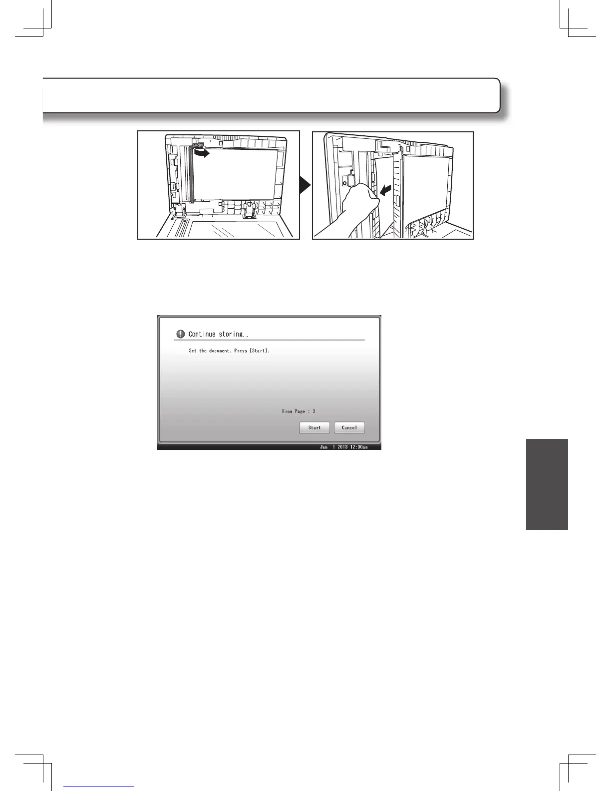 When the following message appears after you have cleared the jam, you can restart
