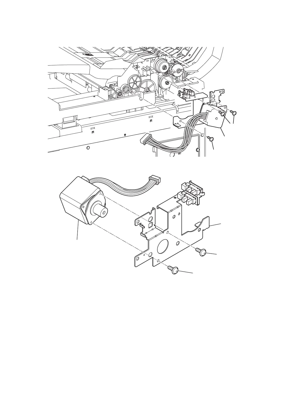 2. Remove three screws [1], then remove the Bracket motor [2].