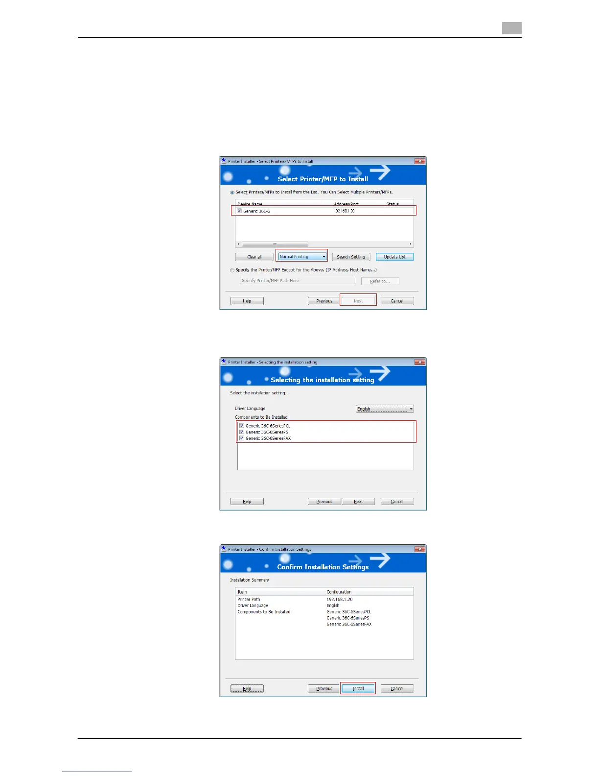 6 Select the check box of the printer driver you want to install, then click [Next].