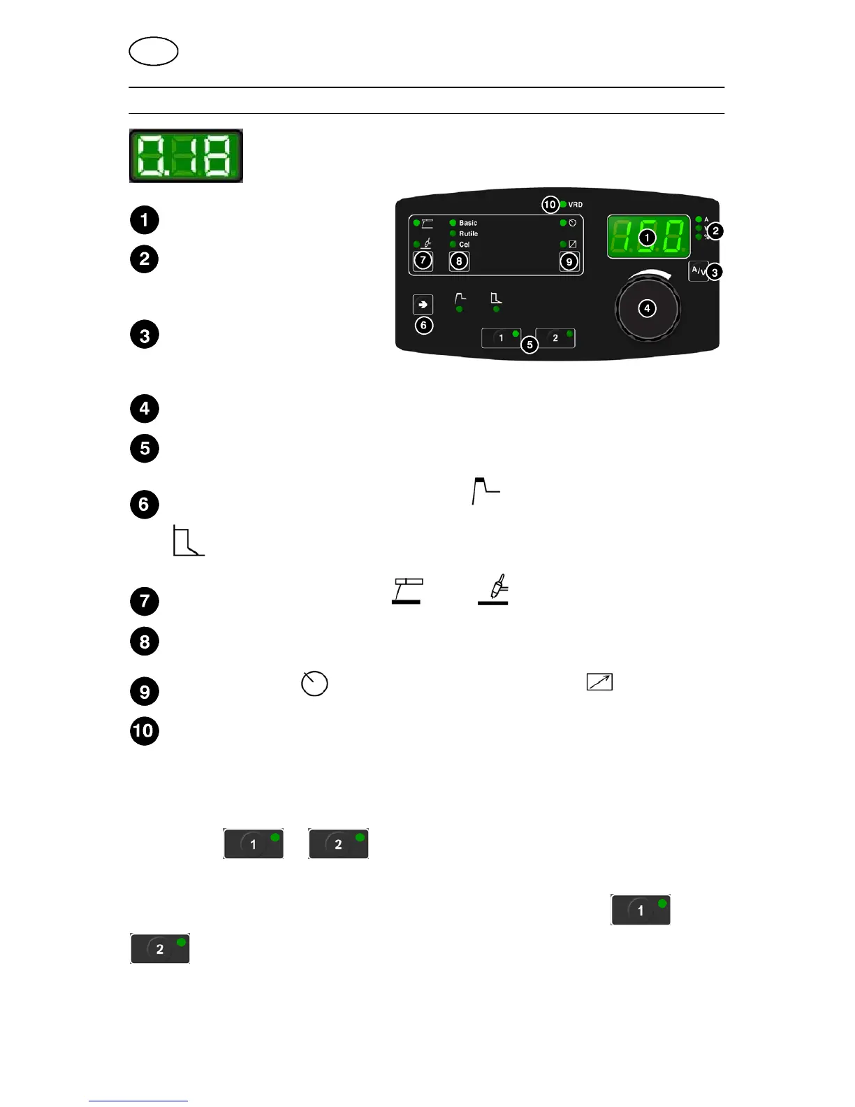 memory. T he welding data is stored when the green indicator lamp starts to flash.