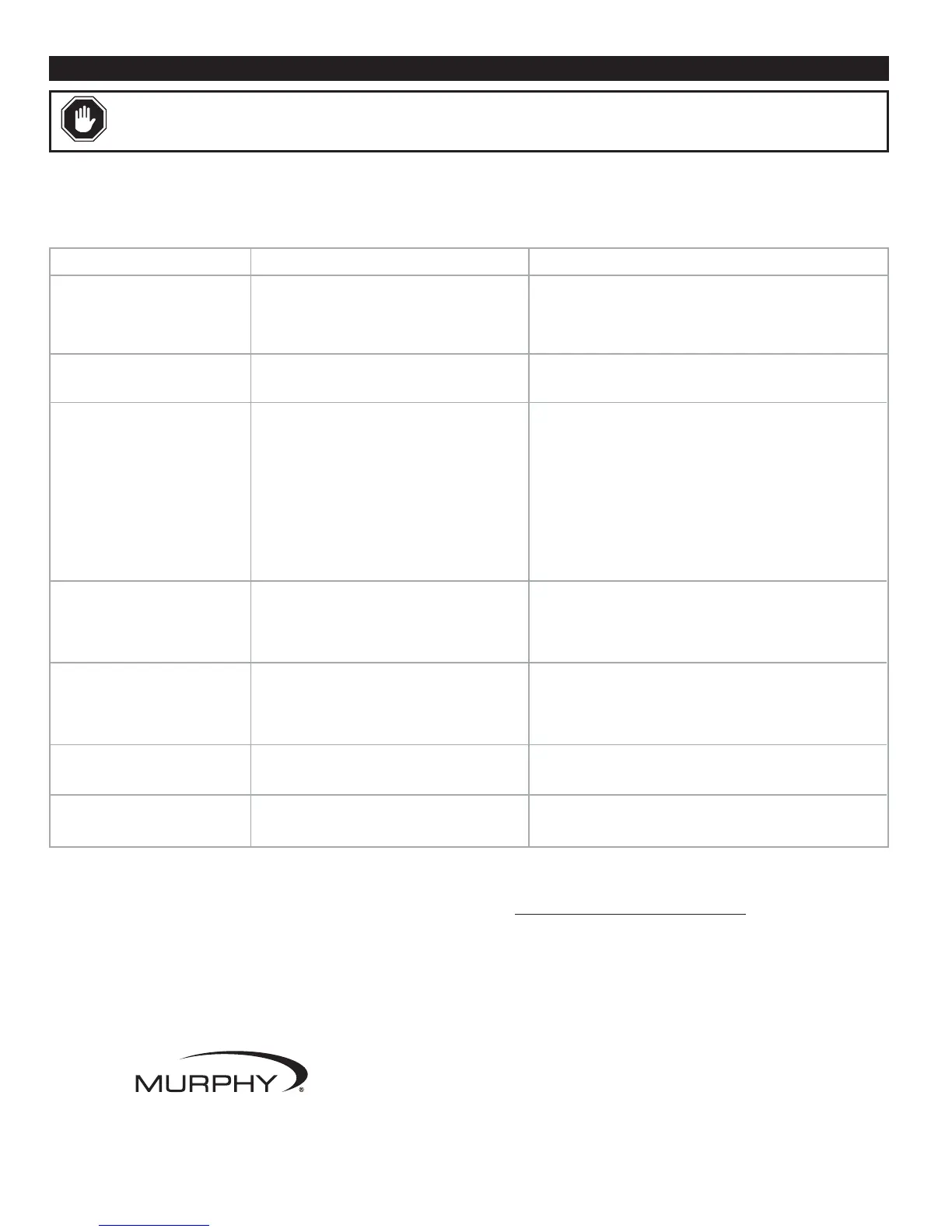 following checks, consult any Murphy facility.