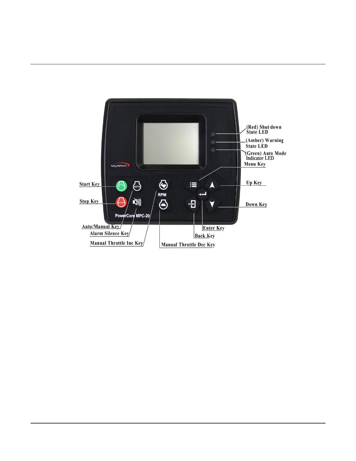 • Manual Throttle Decrease Key – Allows the operator to manually decrease the engine throttle