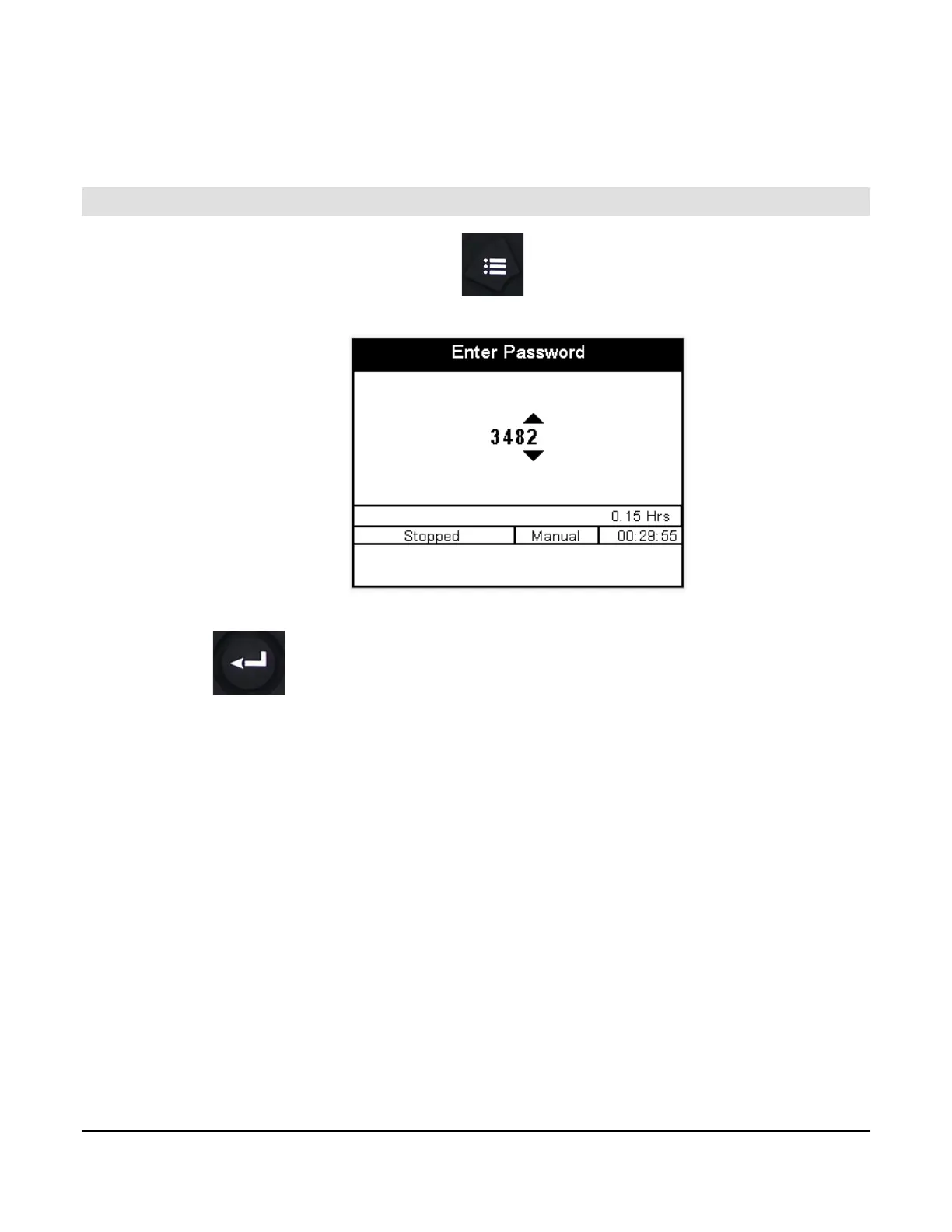 The password will be entered left to right. Utilize the up and down arrows, and press the Enter button after each
