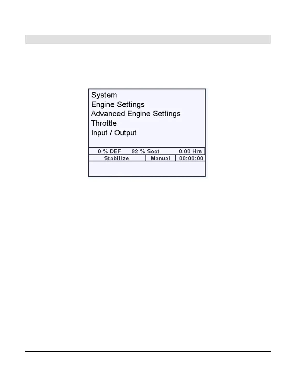 The Engine Settings menu allows the operator to establish common, user-configurable parameters that would be
