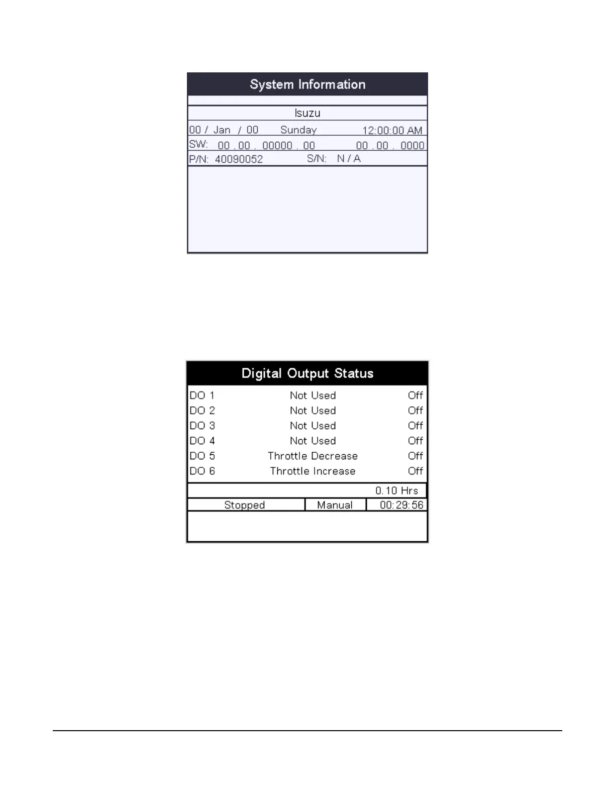 This screen will allow the operator to see what the digital output functions are set to without accessing the menu