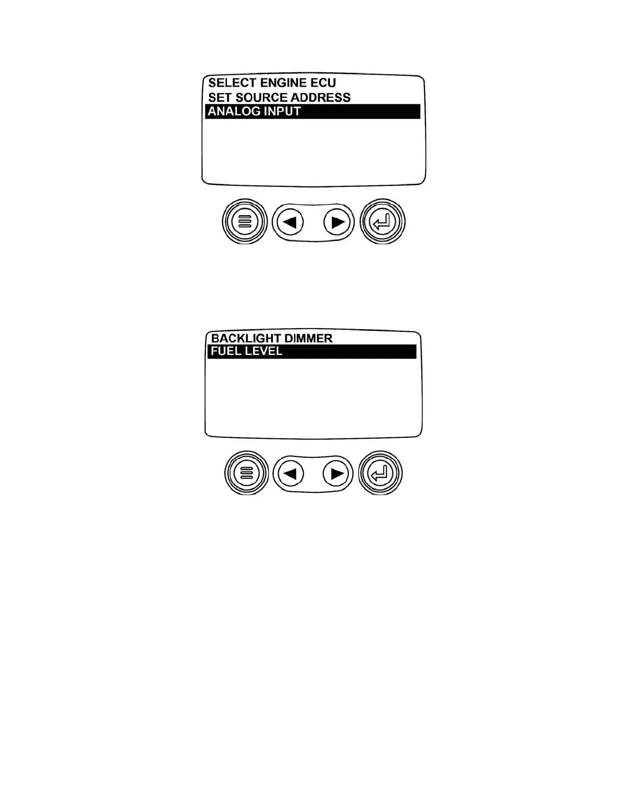 The next screen displayed is the BACKLIGHT DIMMER/FUEL LEVEL selection screen.