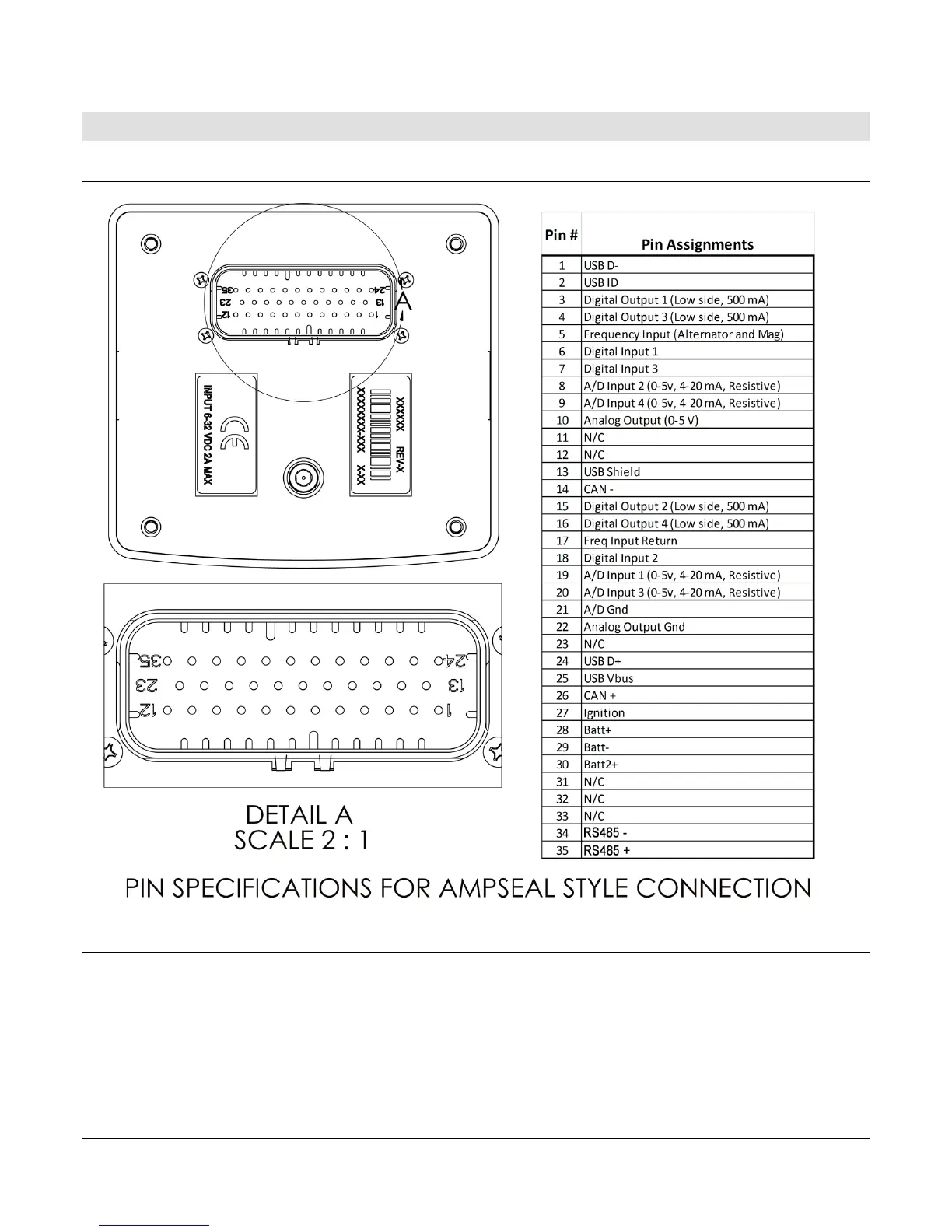 PIN Specifications for AMPSEAL Style Connection