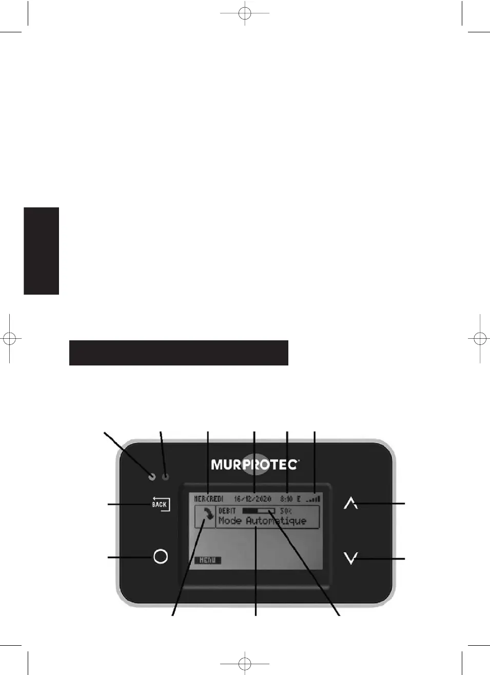 Die Steuerung besteht aus 4 Tasten, 2 Kontrollleuchten und einem Bildschirm: