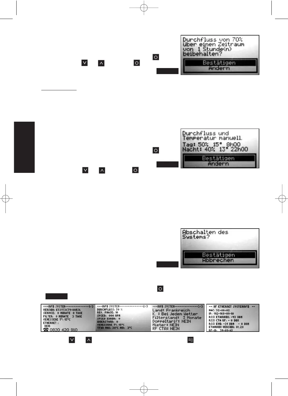 Drücken Sie auf und , um durch den jeweiligen Bildschirm zu scrollen und auf , um zum Hauptbildschirm