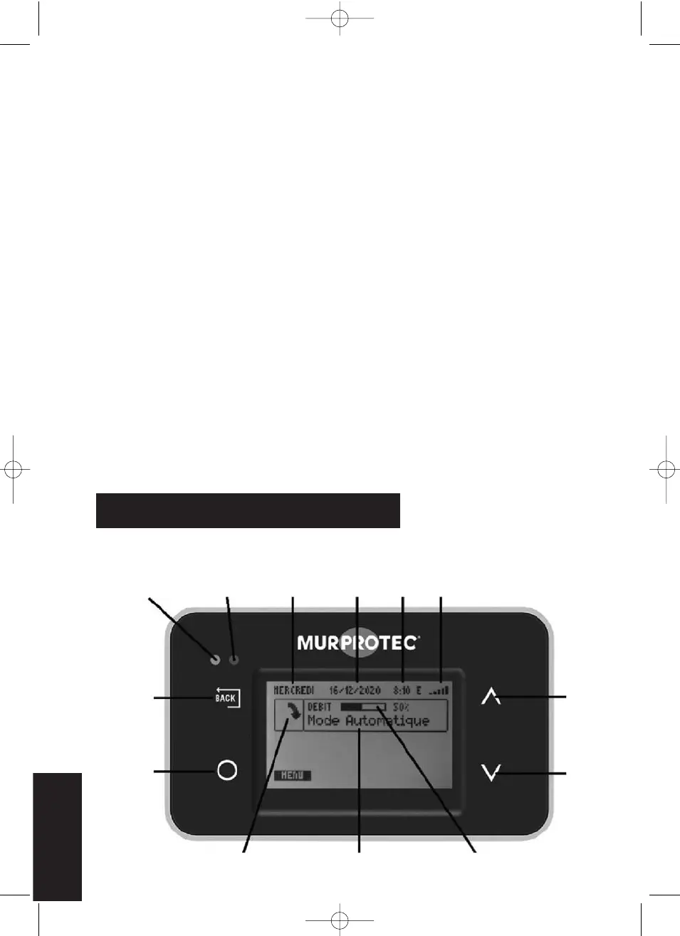 O módulo é composto por 4 botões A caixa é composta por 4 botões, 2 luzes indicadoras e um ecrã: