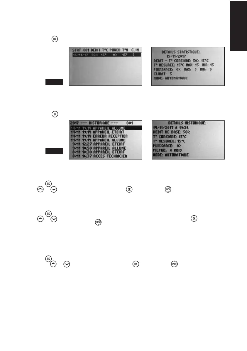 Ce menu reprend des informations concernant le fonctionnement de votre appareil. Le débit moyen sur 24 heures ; la tempé-