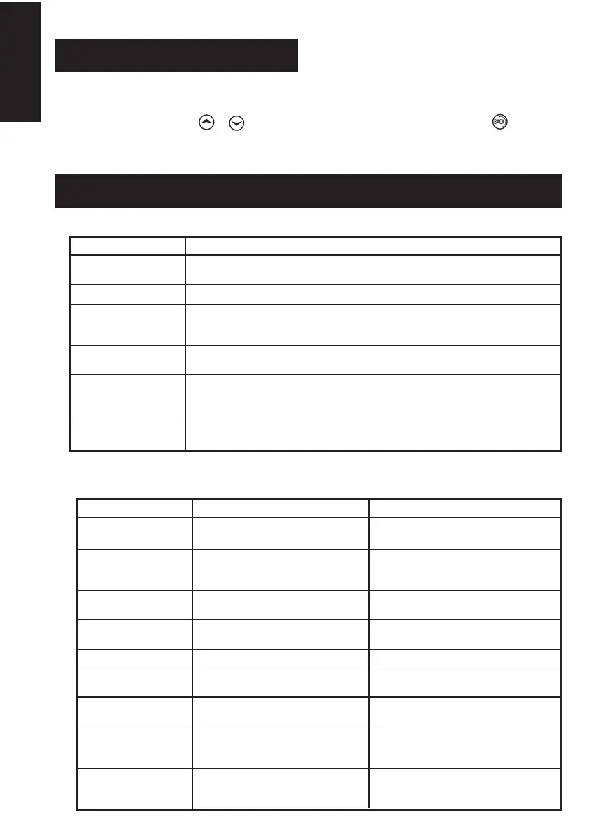 Vous accédez à ce menu en pressant ou lorsque l'écran principal est affiché ; pour quitter, appuyez sur .
