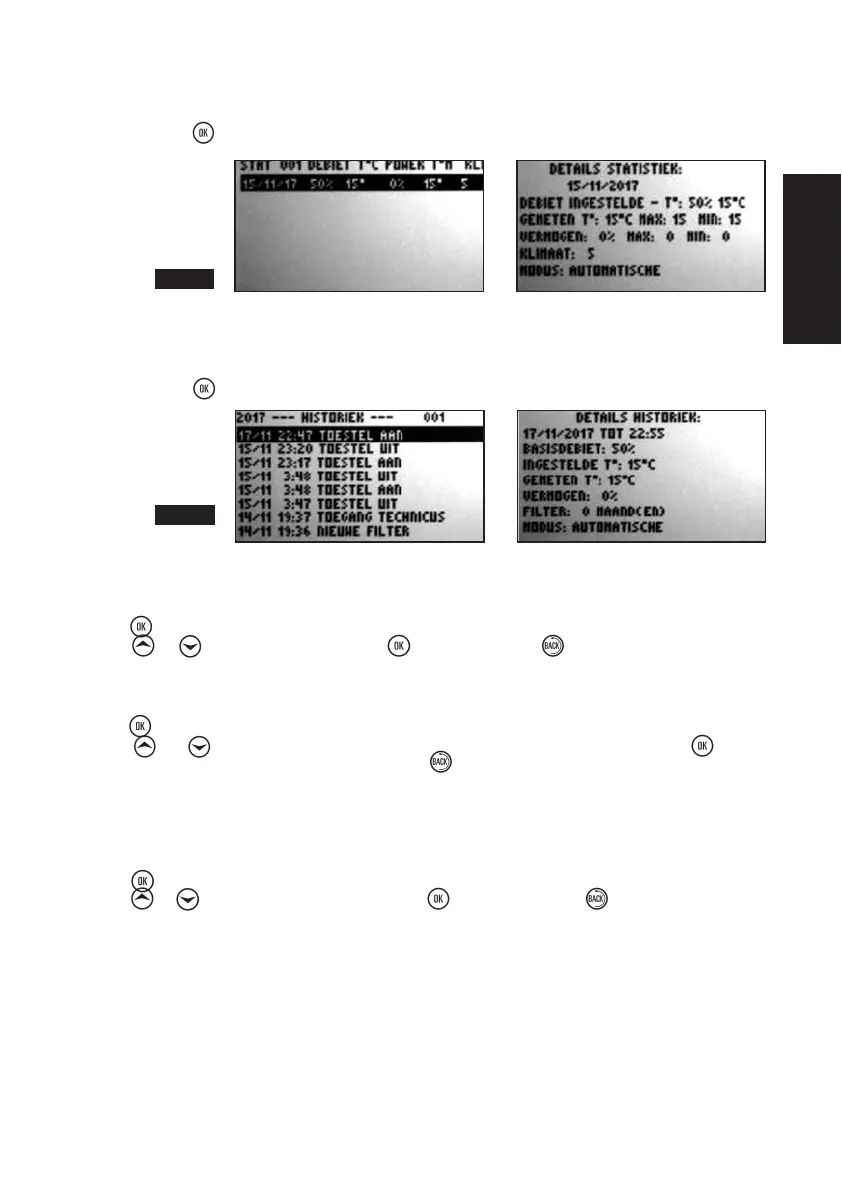 Dit menu bevat informatie over de werking van uw toestel. Het gemiddelde debiet over 24 uur; de aanbevolen temperatuur;