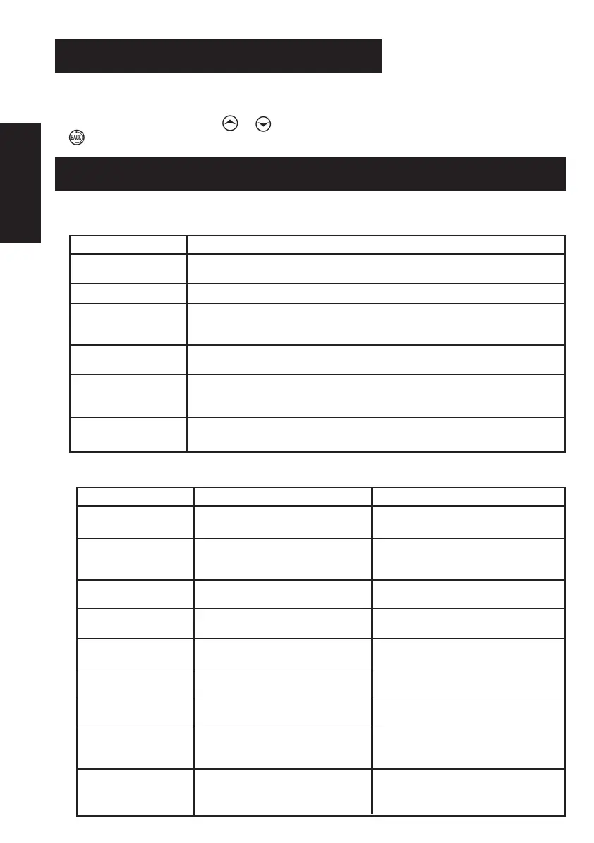 U gaat naar het menu door te drukken op of wanneer het hoofdscherm wordt getoond; om het te verlaten drukt u