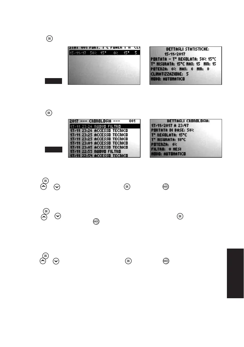 valore e passare al successivo. Premere su se si vuole tornare al valore precedente.