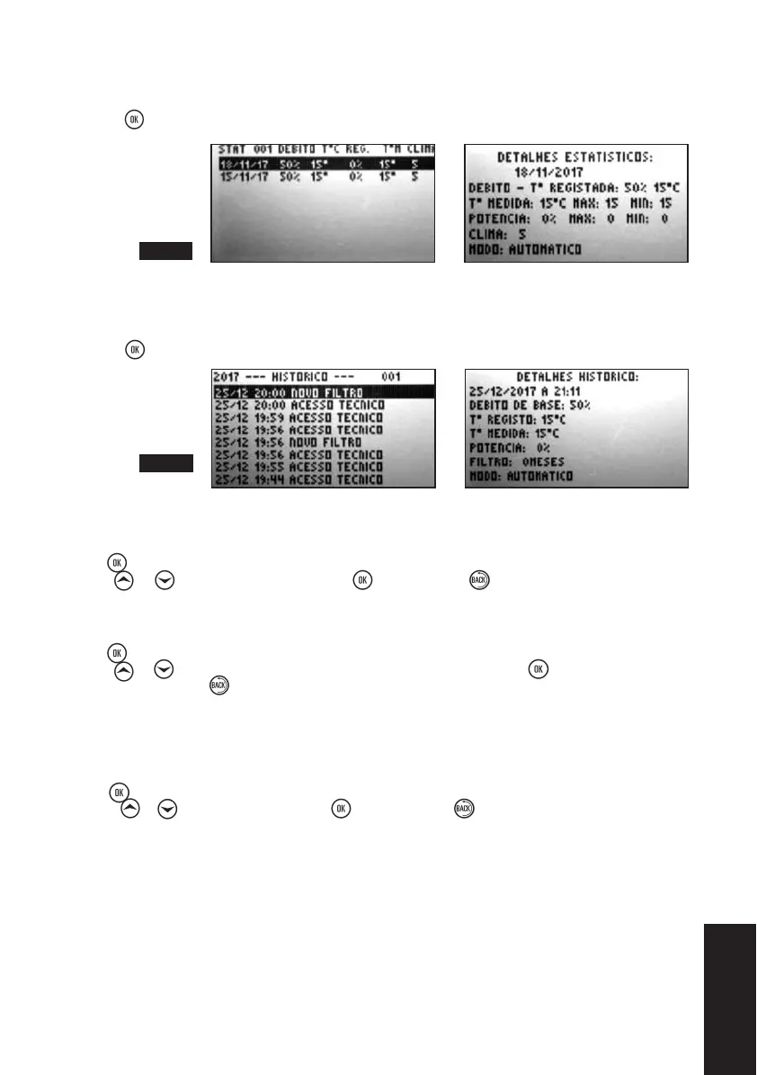 Este menu permite retomar informações relativas ao funcionamento do equipamento: débito médio em 24 horas;