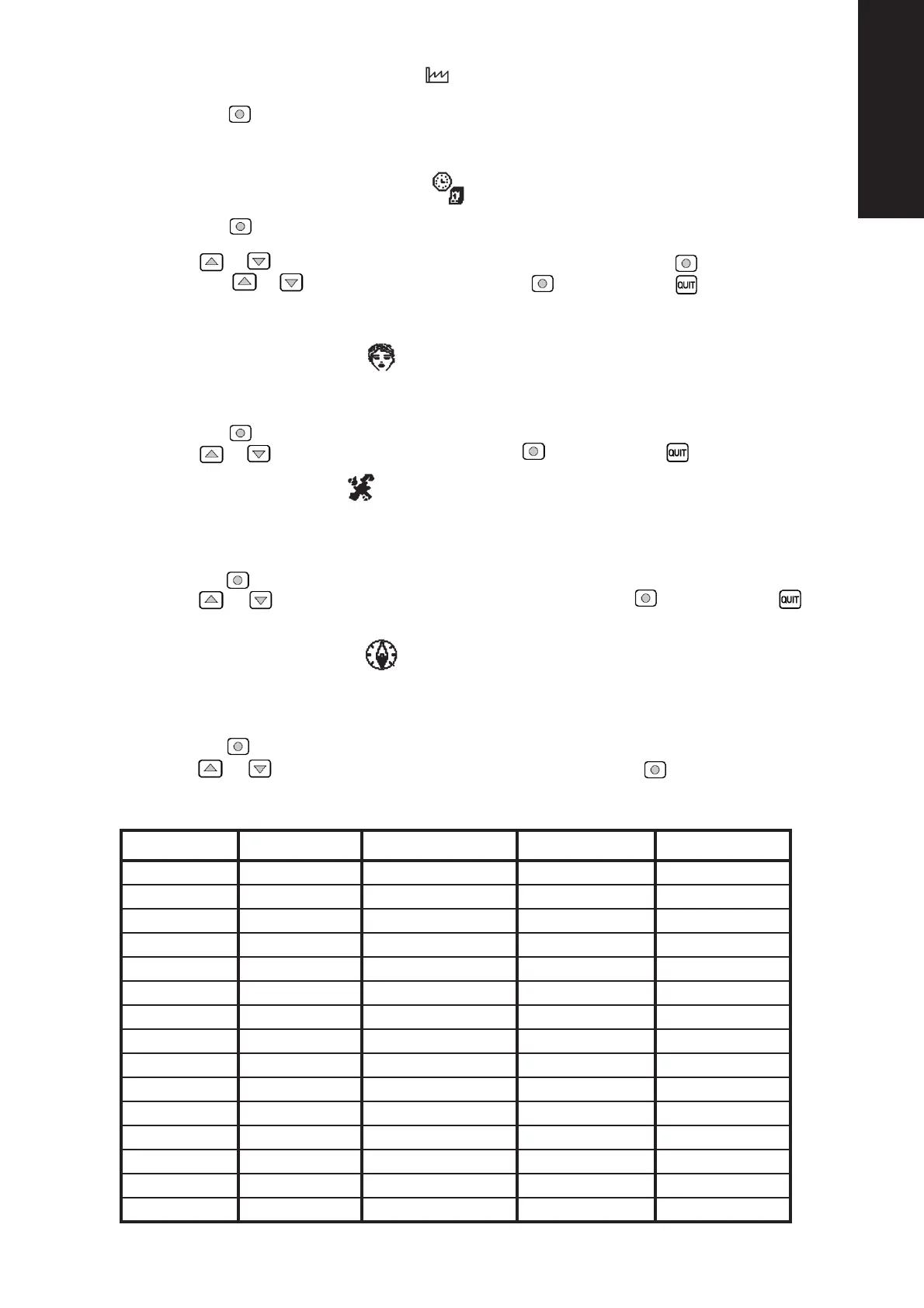 Ce menu configure les saisons, les heures de lever et coucher du soleil ainsi que le numéro de téléphone, adaptés au pays.