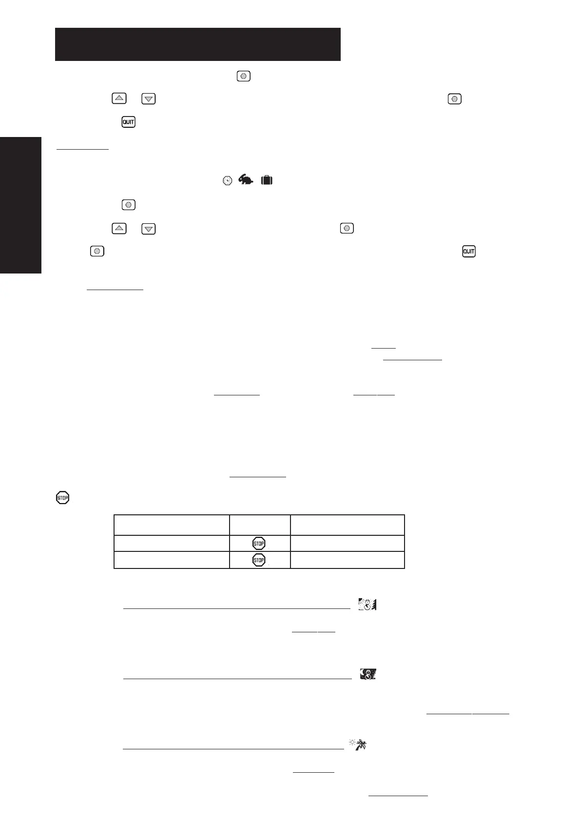 Met de pijltjes en kiest u de gewenste werkingsmodus en druk op . Een tekst met uitleg verschijnt.