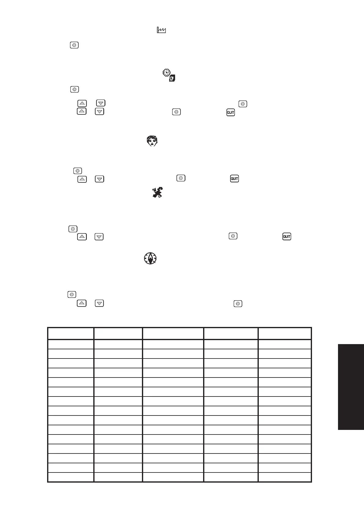 Este menú configura las estaciones, las horas de salida y puesta del sol así como el número de teléfono, adaptados a su